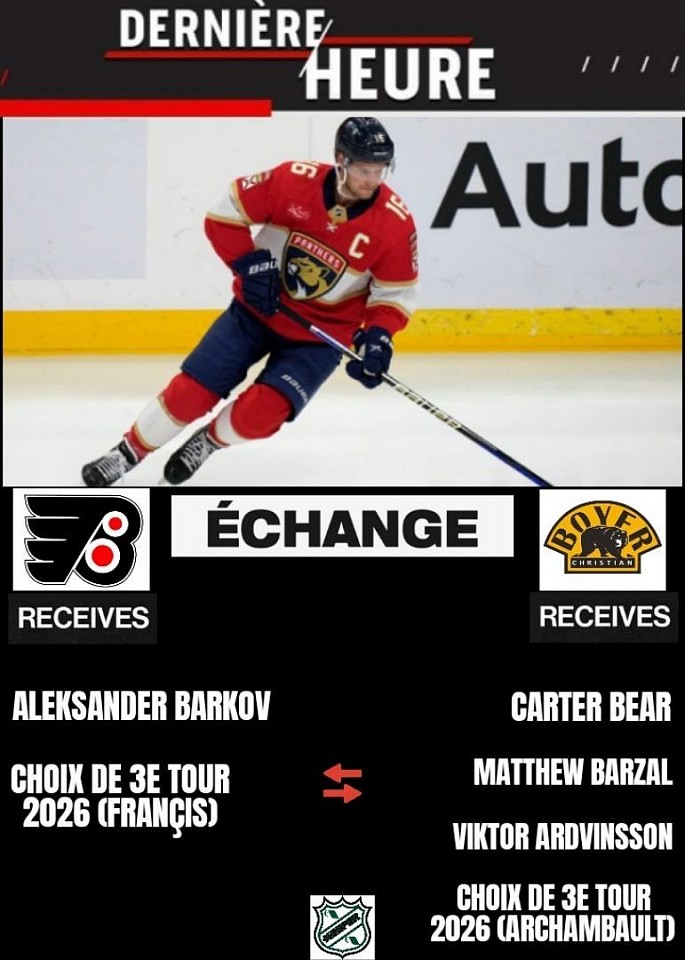 Une transaction équilibrée mais spectaculaire, marquée par deux philosophies distinctes : Bourdeau mise sur un joueur complet et fiable pour son présent, tandis que Boyer diversifie ses actifs en ajoutant un producteur offensif et du potentiel à long terme. Un échange à saveur de blockbuster qui pourrait bien influencer le classement d’ici la fin de la saison.
